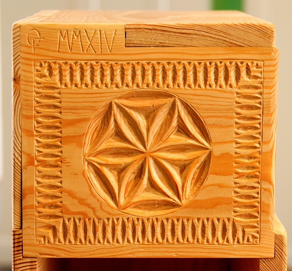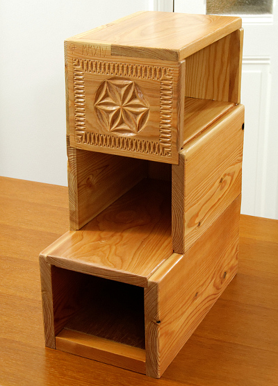 This bedside table was designed with the constraint of openings with various orientations. It is made of larchtree (front parts) and pinewood (back parts).