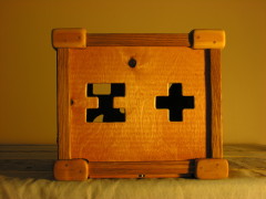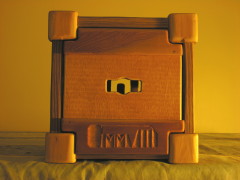 ood species used here include larchtree, pinewood, oaktree, elmtree, and recycled exotic wood (the panels). The wood was protected with poppy oil (